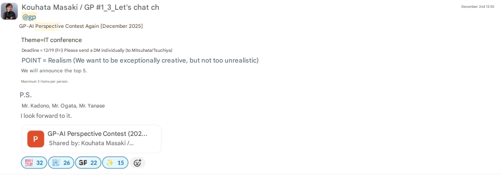 The theme was “IT Conference”—a genre of event that GP frequently produces. One key point was emphasized: while the ideas needed to be exceptionally creative, they also had to feel realistic.
