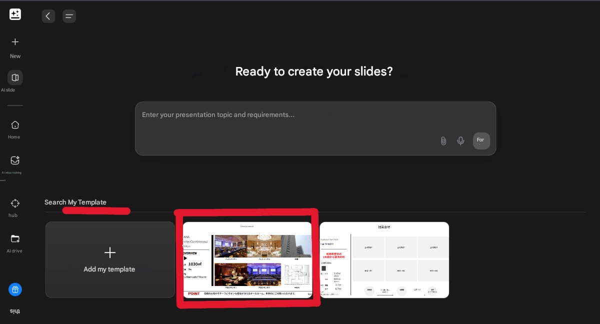 When creating documents that adhere to a standardized design and information structure within the company (e.g., Venue Proposal Slides), utilizing Genspark’s “My Template” feature is essential. Once you have imported and saved your company’s standard template within the system, you will be able to significantly reduce the time required to create similar documents in the future.