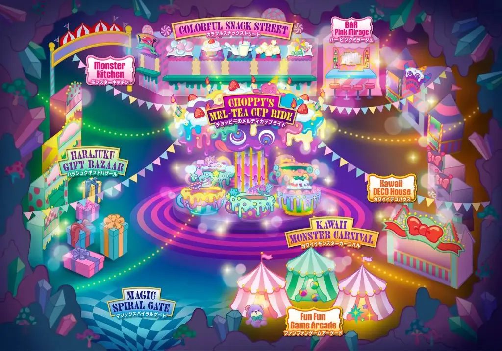 - Kawaii Monster Carnival – a street of stalls where you can play games, decorate items, and prepare to join the monsters