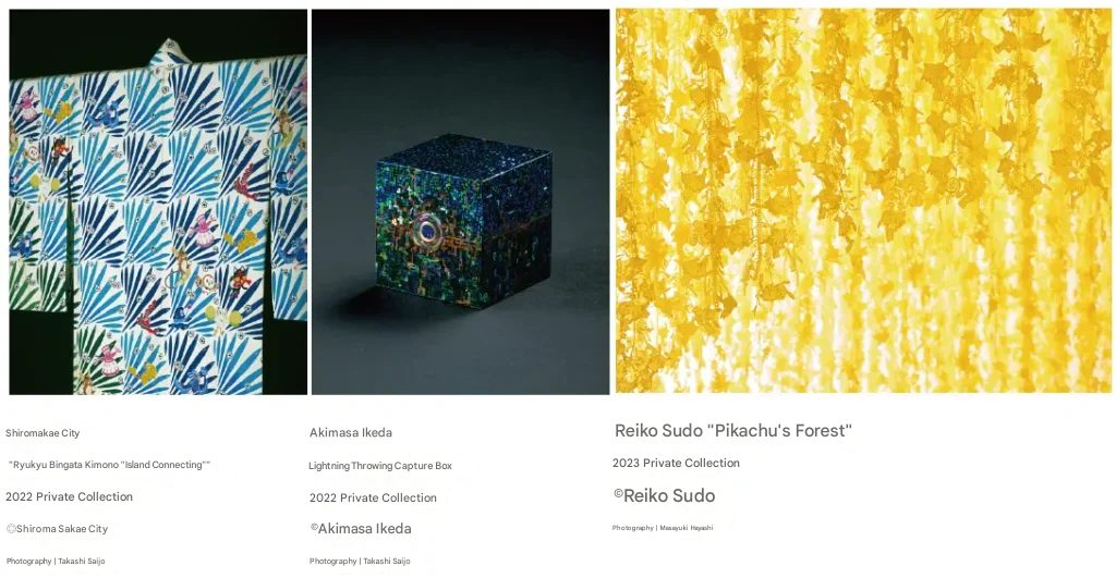 Not only characters, but entire Pokémon worlds were reimagined through craftsmanship—such as kimonos using silk and stencil dyeing, or a Pikachu Forest expressed through cotton and needle lace.