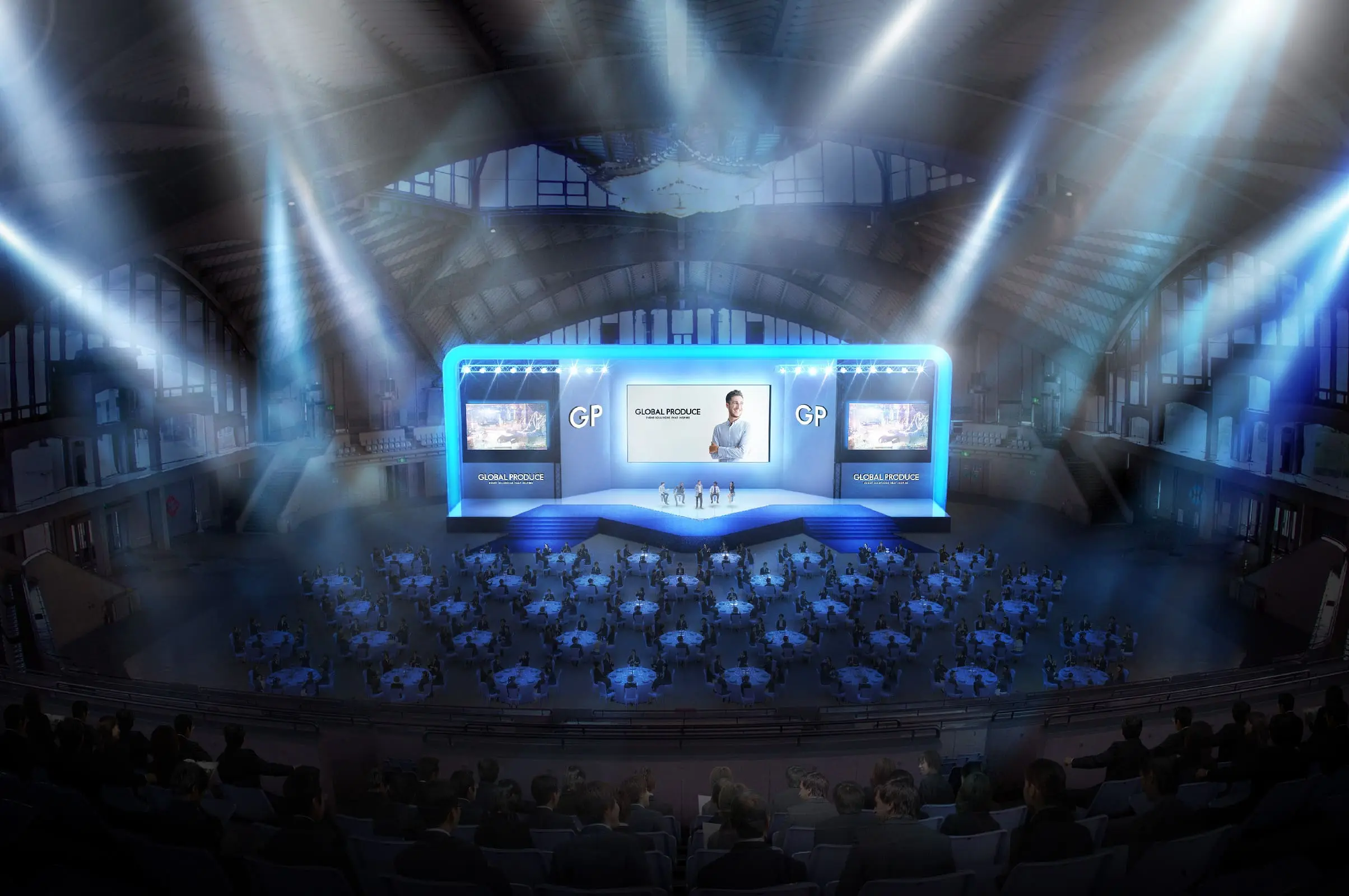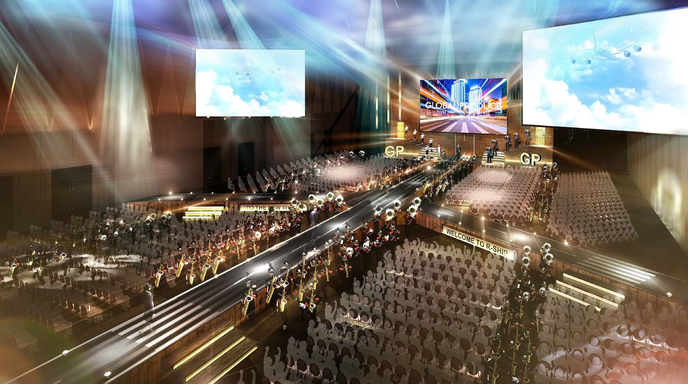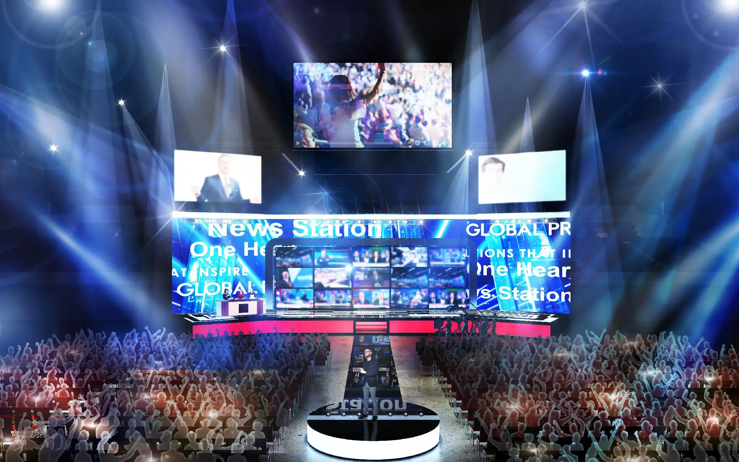 A visually stunning presentation space that fuses a modern circular stage with advanced video technology. Interactive effects resonate with and stir the hearts of the audience.