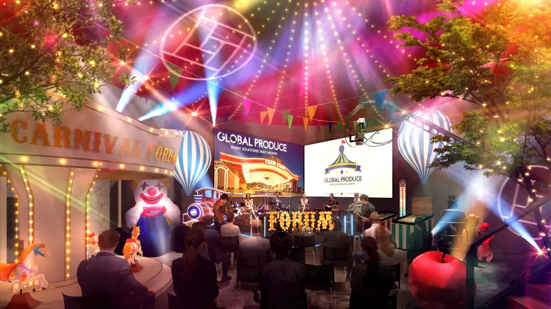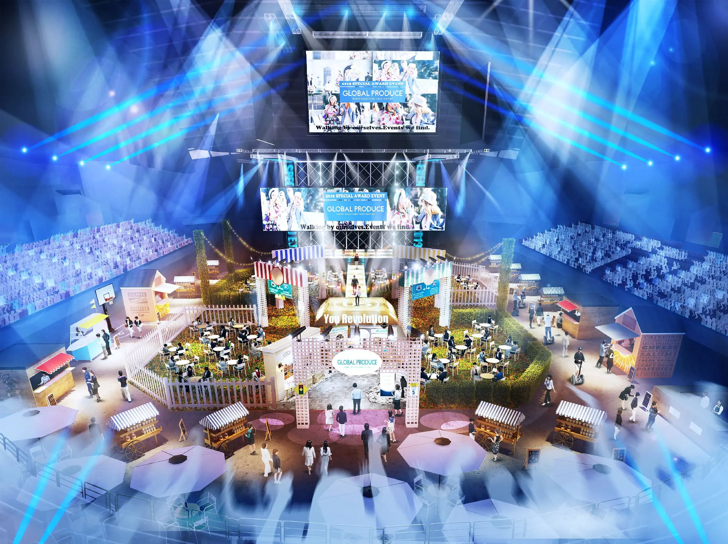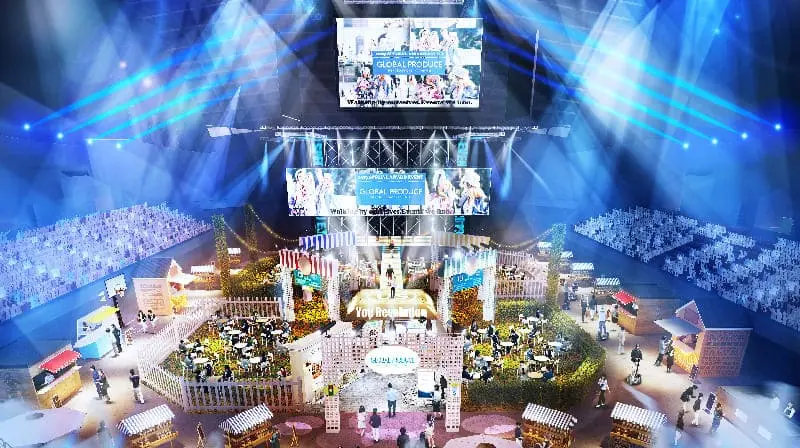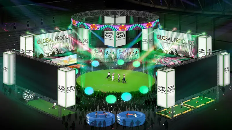 A festival-style event combining a circular stage with interactive lighting. Multiple attractions are placed around the stage, designing a space where the entire venue can be enjoyed.