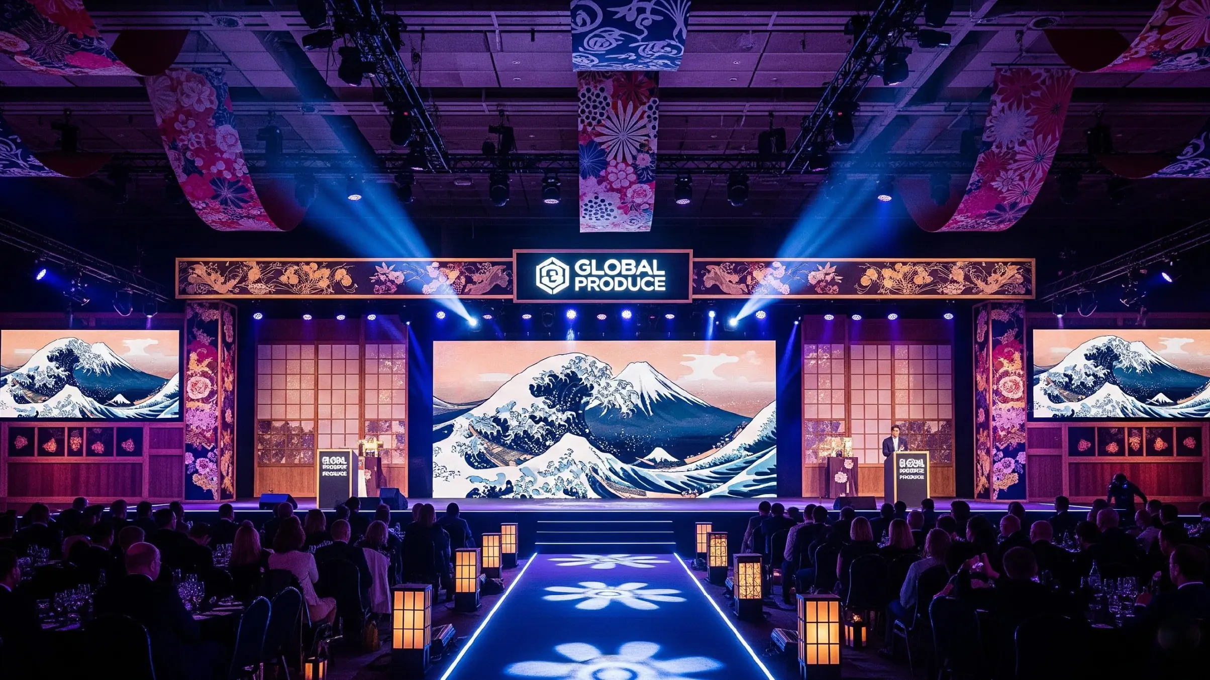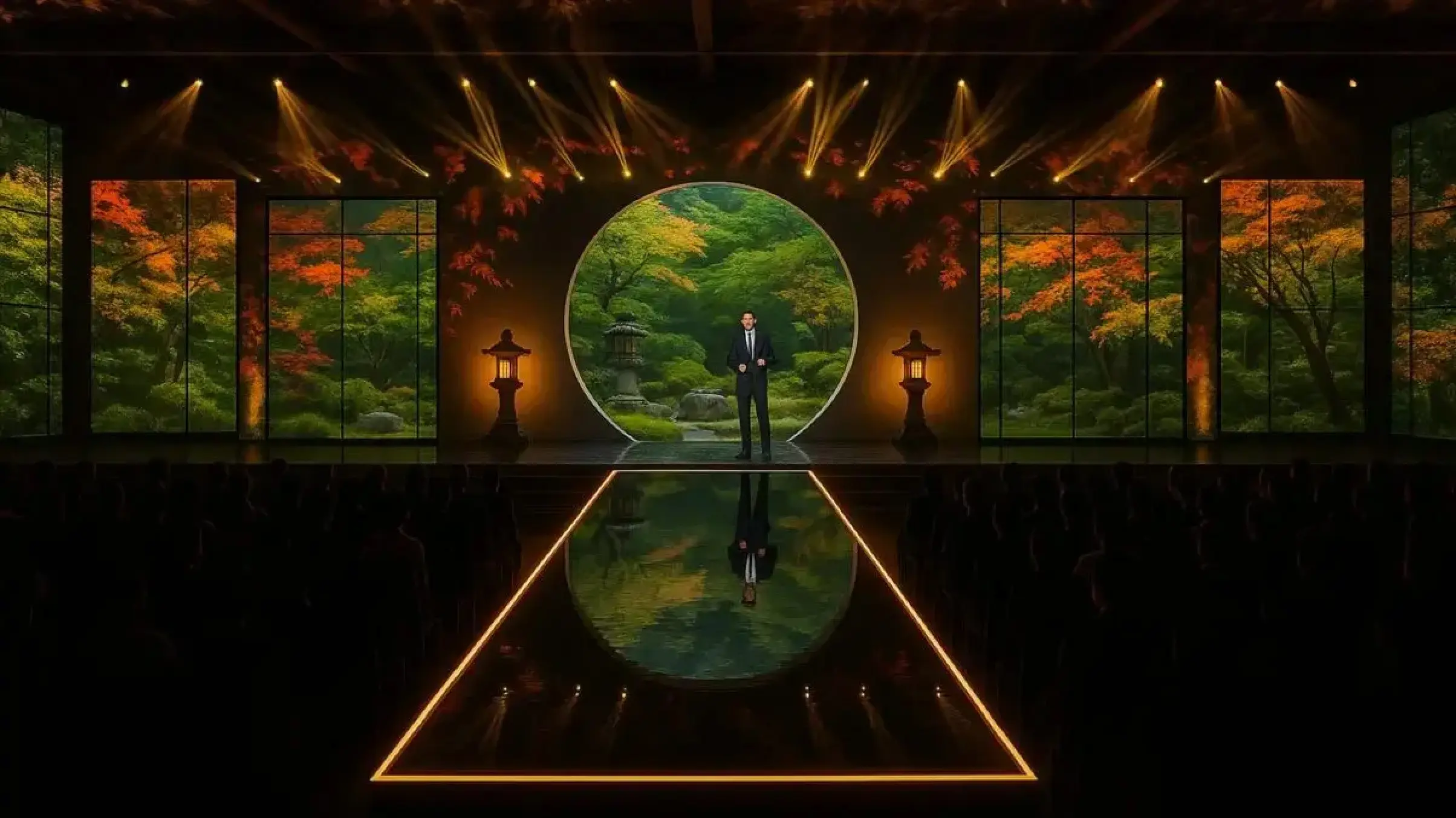 [AI] Inspired by Hokusai and crafted with Nishijin weave, this stage layers light, texture, and tradition to embody Japan’s enduring strength and grace.