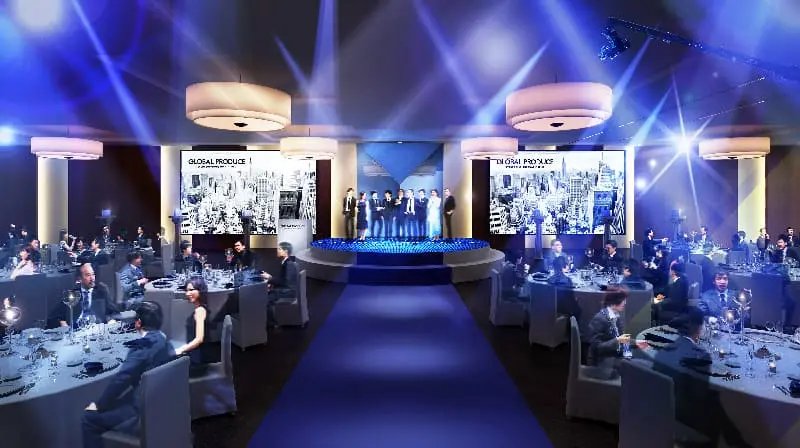An awards event in Toyako, Hokkaido, a place of stunning natural beauty. The design incorporates natural elements and enchanting ceiling decorations, creating a sophisticated space where nature and brand harmonize.